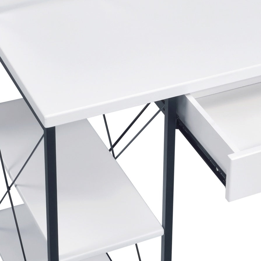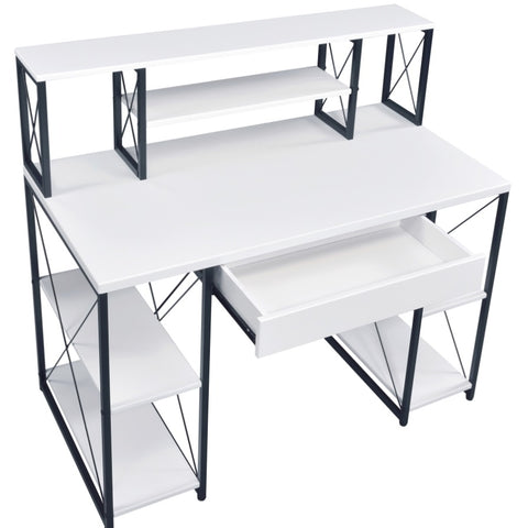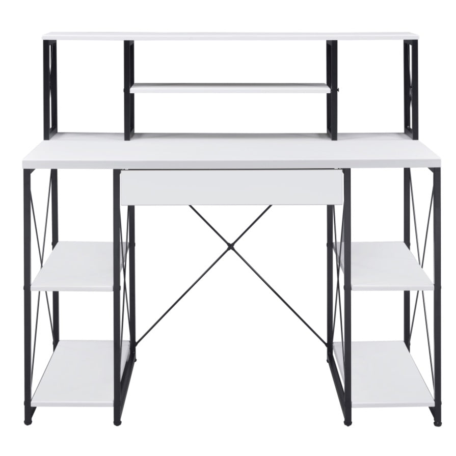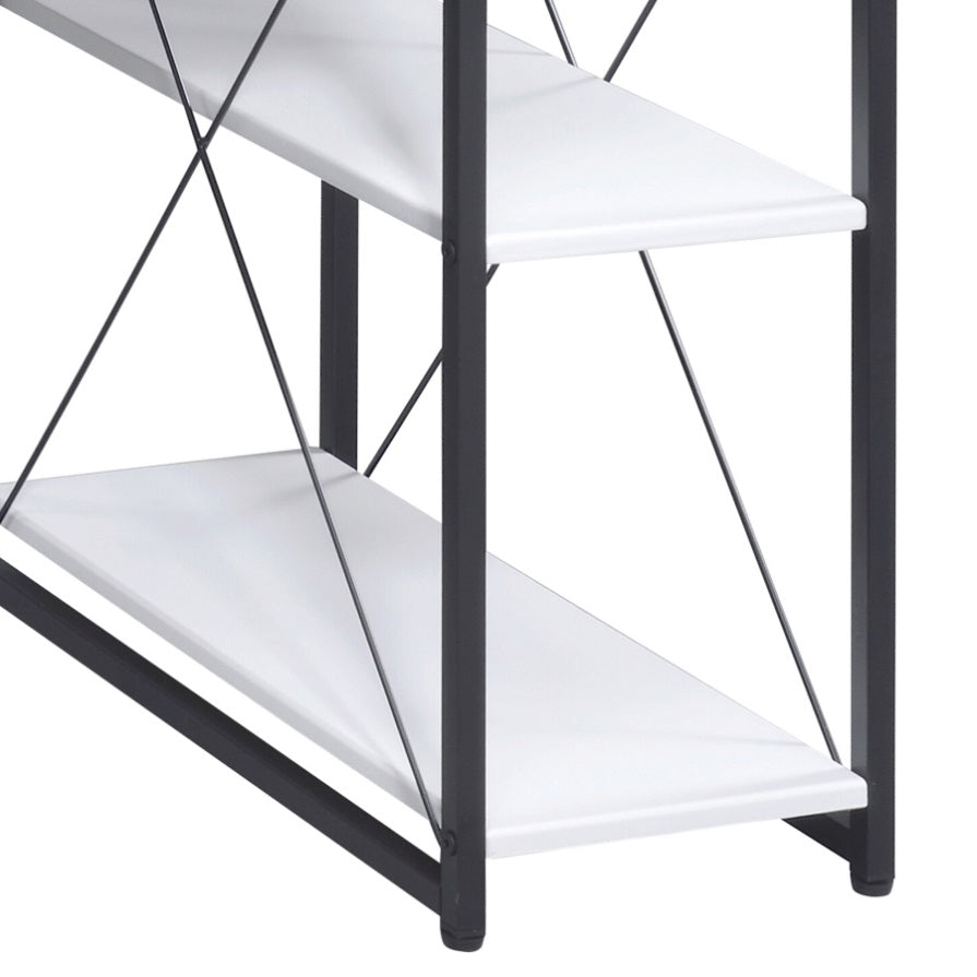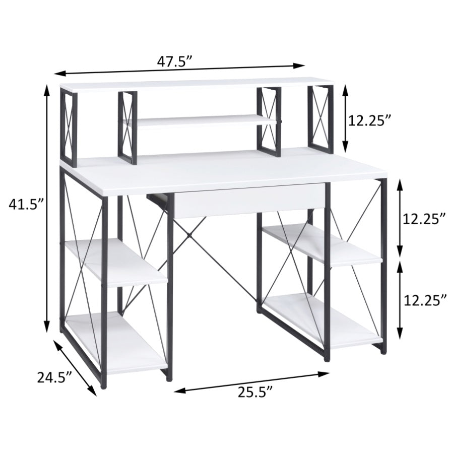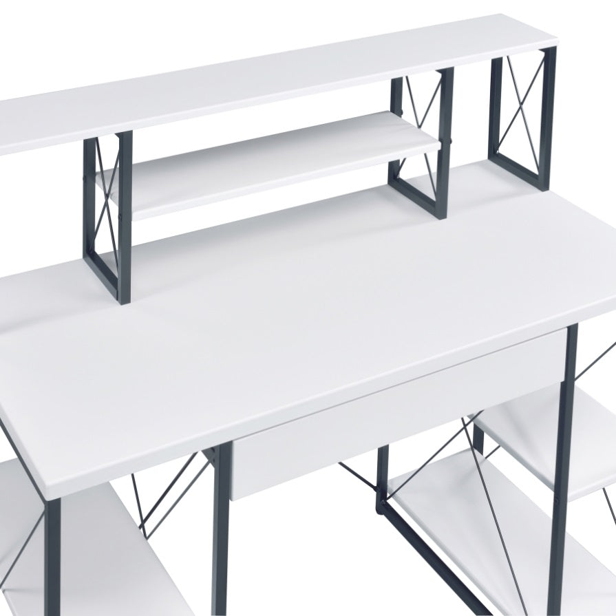 White and Black Office Desk with Open Shelves and Hutch B062P184529