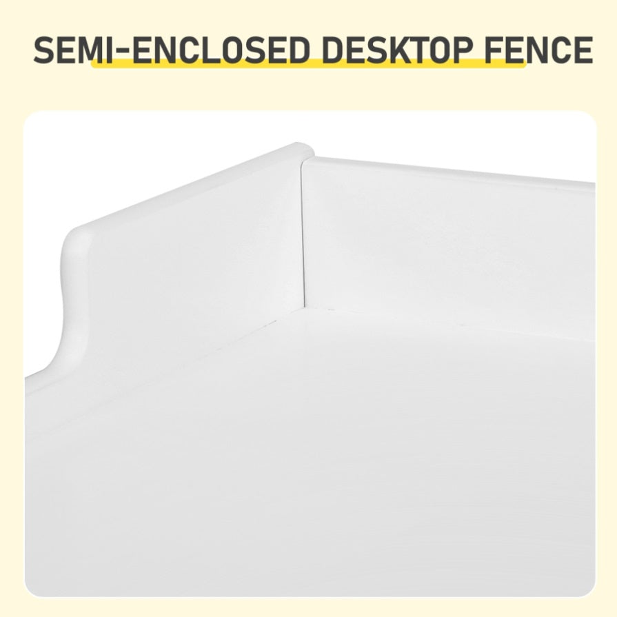 Designed for young learners, this white MDF study desk and chair set combines functionality with minimalist style. The set includes a sturdy desk with two built-in storage compartments and a matching chair, both crafted from child-safe materials. With its clean white finish and compact dimensions (60.5*41.5*50cm), this versatile furniture piece fits seamlessly into any room decor while providing a dedicated space for homework, crafts, and creative activities. The rounded edges and stable construction ensure safety during use.