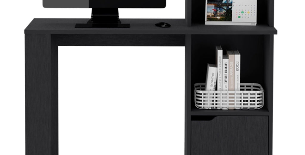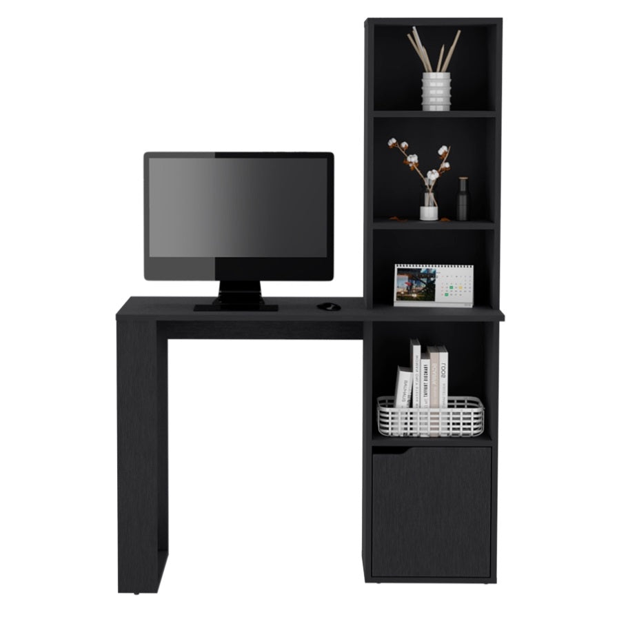 Writing Desk With Bookcase and Cabinet, Black B097120596