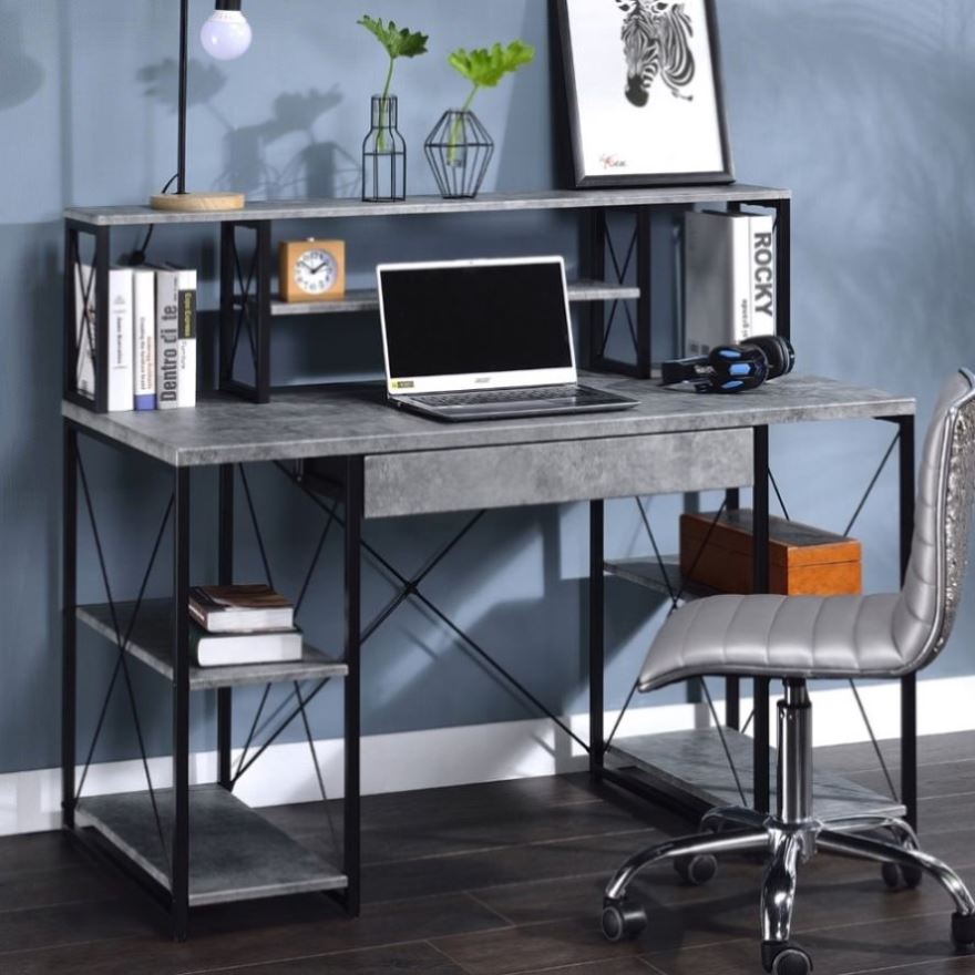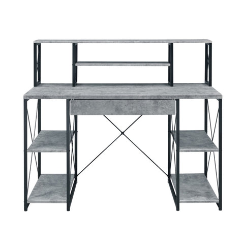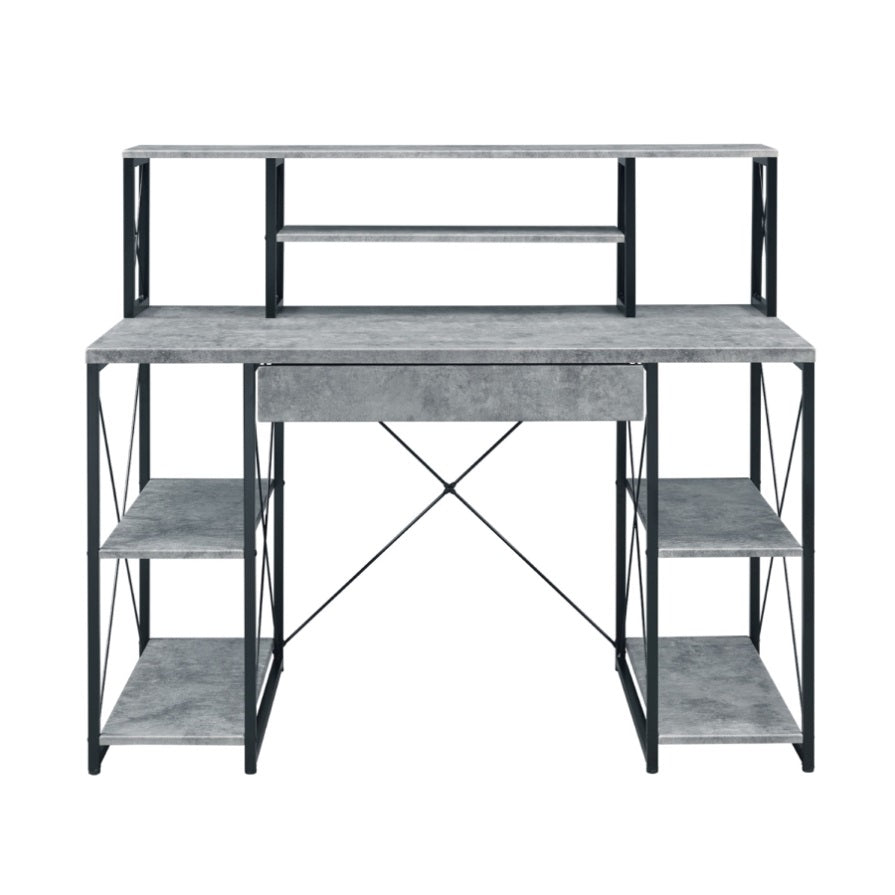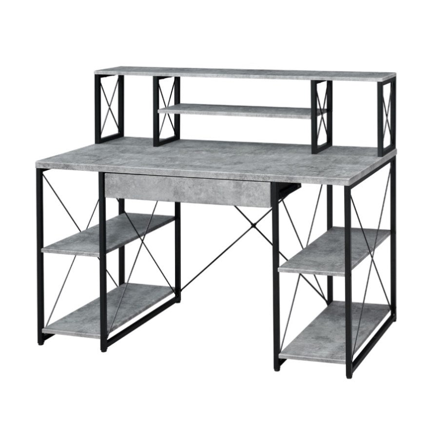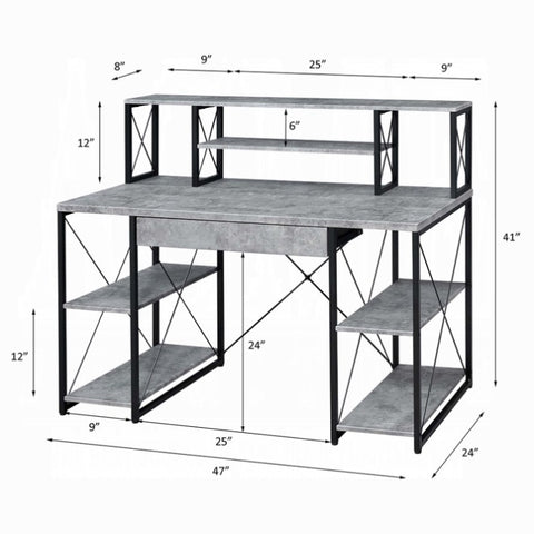 Writing Desk with One Drawer and 8 Open Compartment, Faux Concrete and Black B016P311824