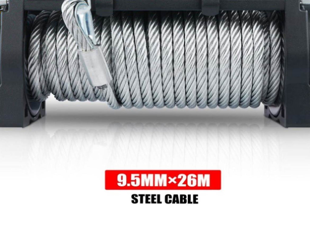 Specification Condition: Brand New Single Line Rated Pull: 12000LBS/5443KGS Motor: 6.0 hp Remote Control: 1 PC Wireless control 1 PC Wired Control Control:Remote Switch, 12ft(3.7m)Lead Gear Train: 3 Stage Planetary Gear Ratio: 265:1 Braking: Automatic Load-Holding Brake Battery Recommended: 650 CCA Minimum Battery Leader: 2 gauge, 72''(1.83m) Fairlead: 4-Way Roller Fairlead Synthetic Rope: 9.5mm × 26m