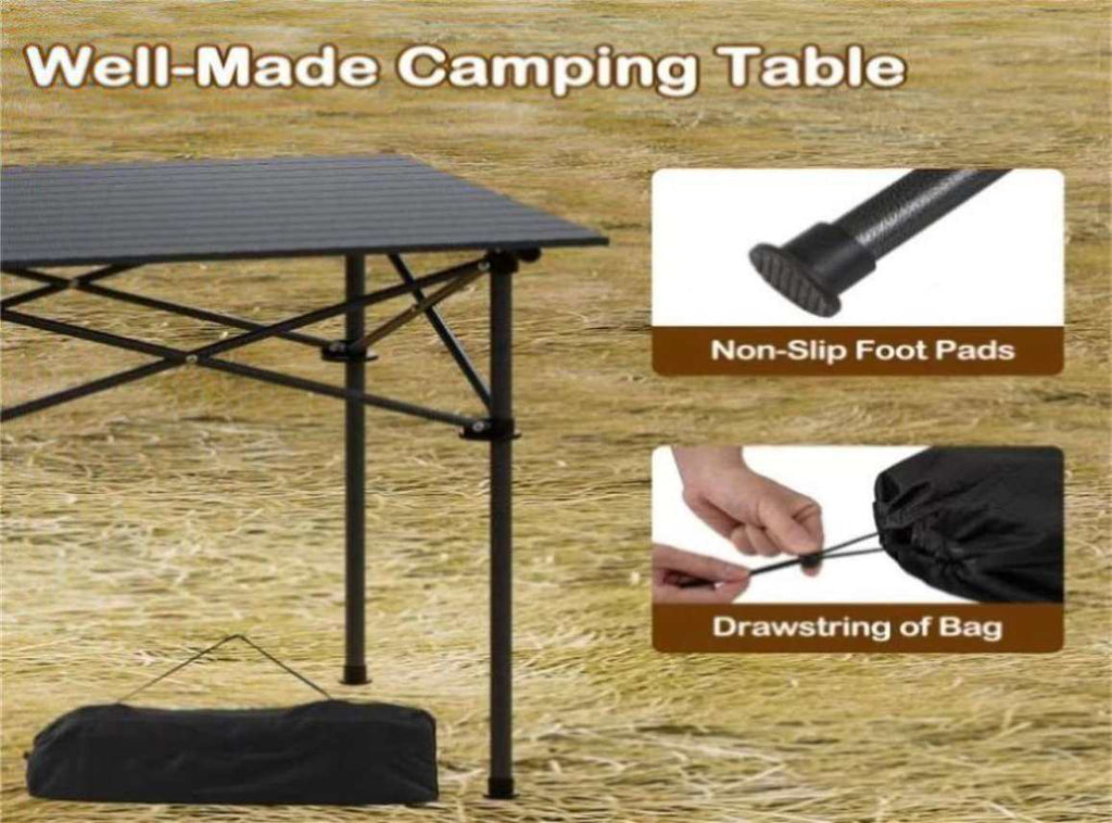 • Quick Setup Design: Featuring a convenient roll-up design and snap lock system, this collapsible camping table sets up quickly without effort. Enjoy more time relaxing outdoors instead of struggling with complicated assembly.