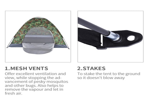 Enjoy entertainment outdoors with the 3-4 Person Camping Dome Tent! It has a spacious room that can sleep up to 4 persons. The dome is made of 180T silver coated polyester, which is breathable, tear-resistant, and UV-proof. Meanwhile, the floor uses strong and waterproof nylon oxford. Glass fiber poles feature high-strength while remaining lightweight. And it can be packed into the included portable bag for ease of transportation. For weekend camping or outdoor adventures, this tent is definitely a great choice. Don't hesitate to order now!
