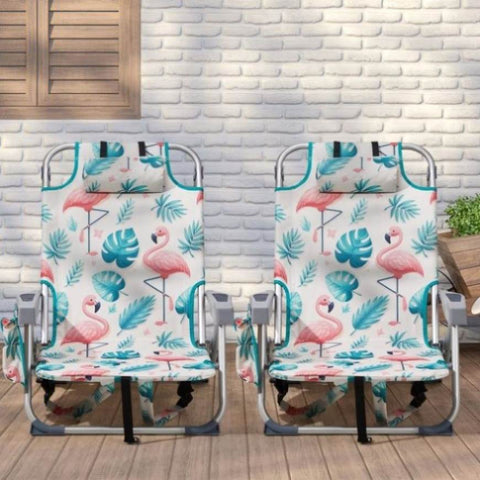 63*65*82cm Short Oxford Cloth Silver White Aluminum Tube Bearing 100kg Beach Chair Flamingo 74554603