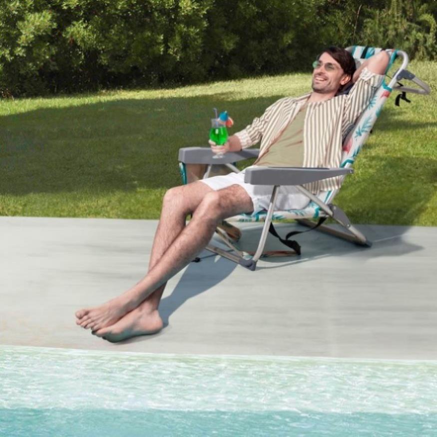 Get comfortable with this Folding beach Chair. It is an ideal solution for sitting and relaxing in comfort during outdoor activities. It is also a must-have for a sporting event, a picnic, a camping trip or even just to the backyard. The aluminum frame is not only light-weight, but also offers even greater sturdiness and stability to make it stand up to various conditions. In addition, the adjustable back with 5 positions to create better sitting feeling, and the extra storage space such as pouches on the back and side cup holder allow you to keeps the necessities right by your side. The beach chair is light-weight and easy to move so that it fits easily inside most vehicles for fast transport wherever you need.