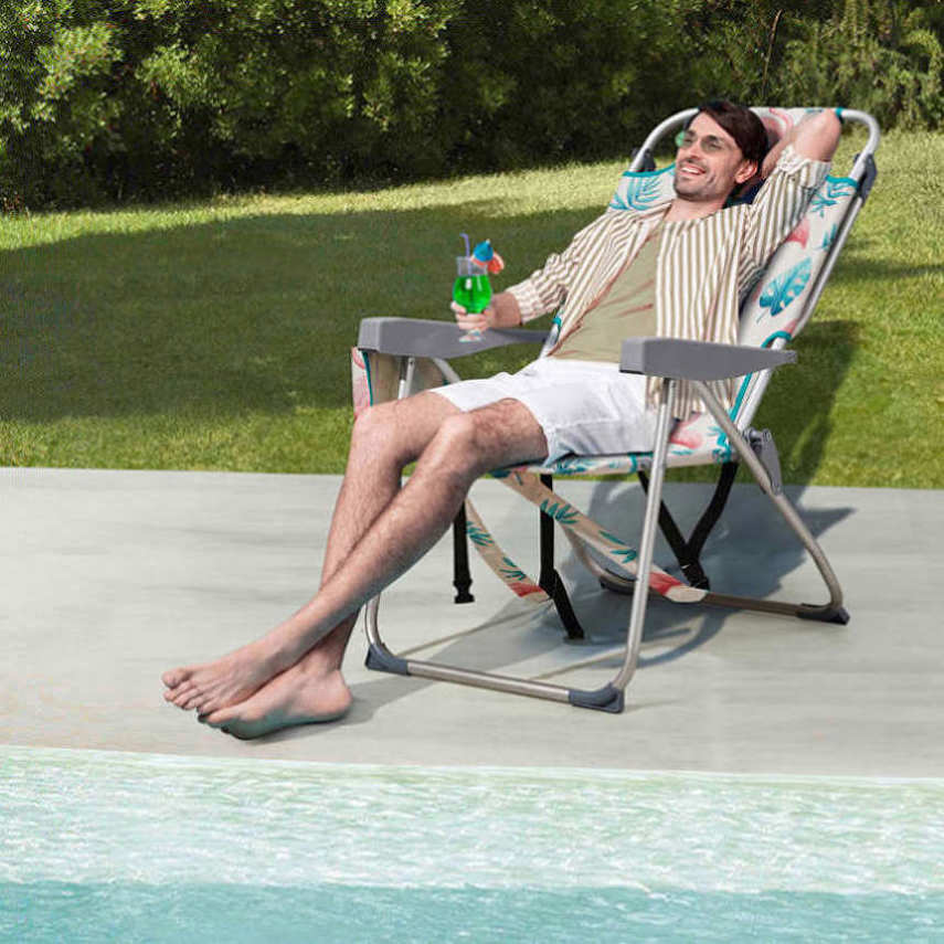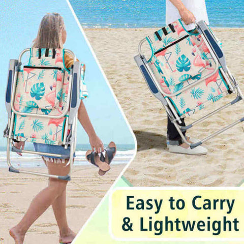 Get comfortable with this Folding beach Chair. It is an ideal solution for sitting and relaxing in comfort during outdoor activities. It is also a must-have for a sporting event, a picnic, a camping trip or even just to the backyard. The aluminum frame is not only light-weight, but also offers even greater sturdiness and stability to make it stand up to various conditions. In addition, the adjustable back with 5 positions to create better sitting feeling, and the extra storage space such as pouches on the back and side cup holder allow you to keeps the necessities right by your side. The beach chair is light-weight and easy to move so that it fits easily inside most vehicles for fast transport wherever you need.