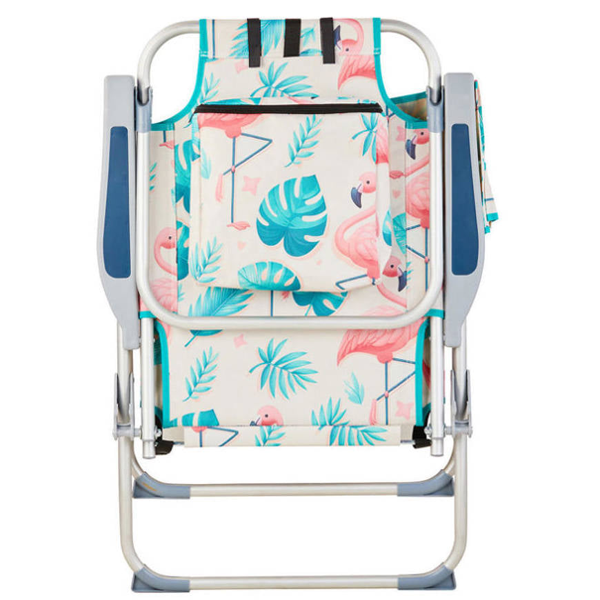 63*70*99cm Heightened Oxford Cloth Silver White Aluminum Tube Bearing 100kg Beach Chair Flamingo 01440155