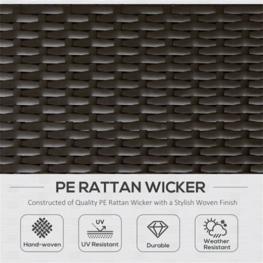 - - Materials: Steel, Tempered Glass, PE Rattan Base, Polyester Fabric