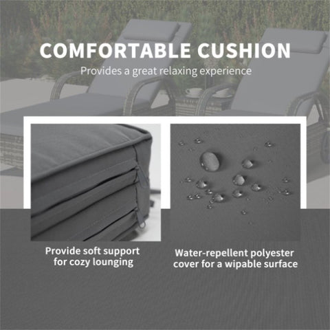 - - Pool furniture set with two chaise lounge chairs and an outdoor table