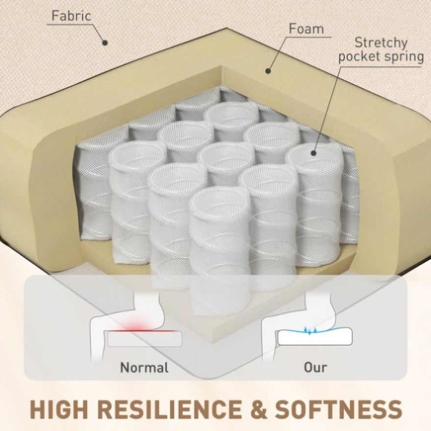 - - Thick foam with pocket springs, S springs, and elastic bands for enhanced comfort