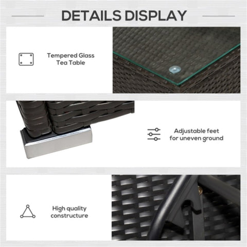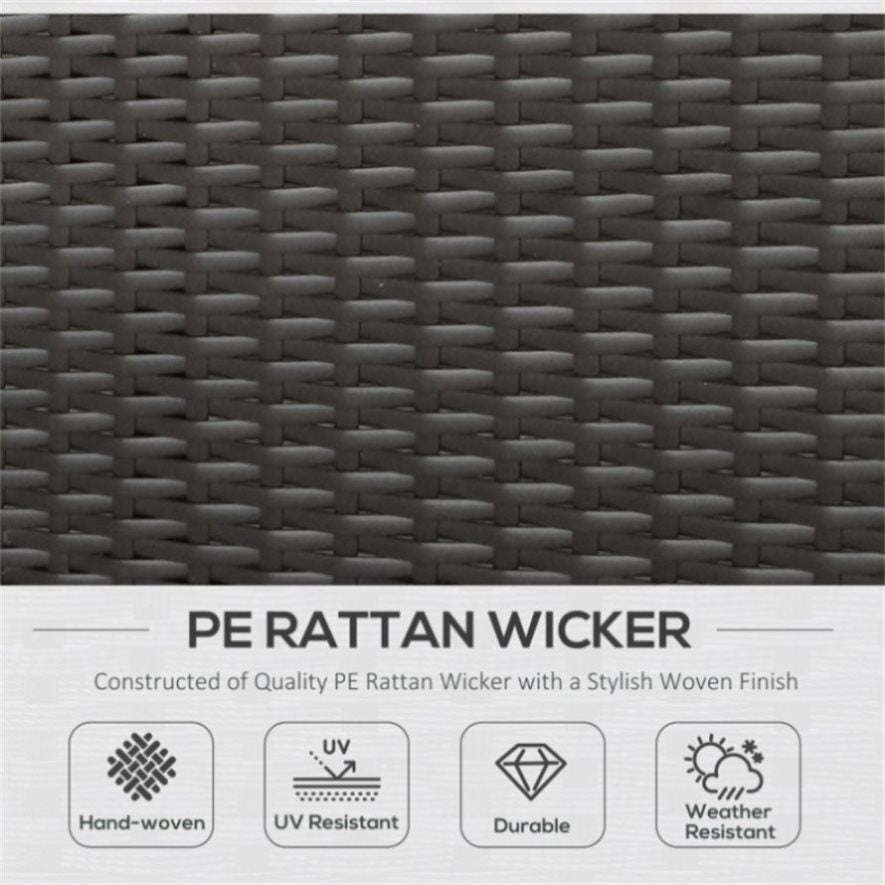 - - Materials: Steel, Tempered Glass, PE Rattan Base, Polyester Fabric