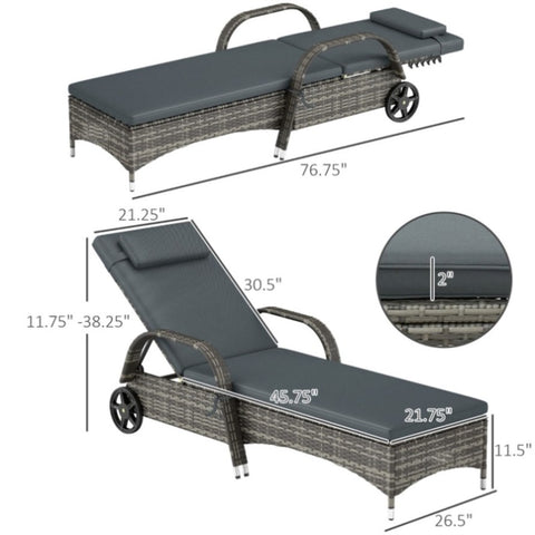 - - Lounge Dimensions: 76.8" L x 26.4" W x 38.2" H (fully flat size)