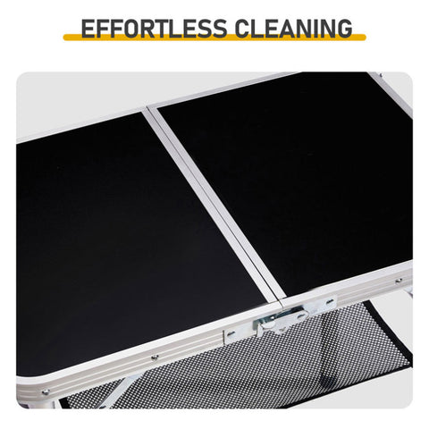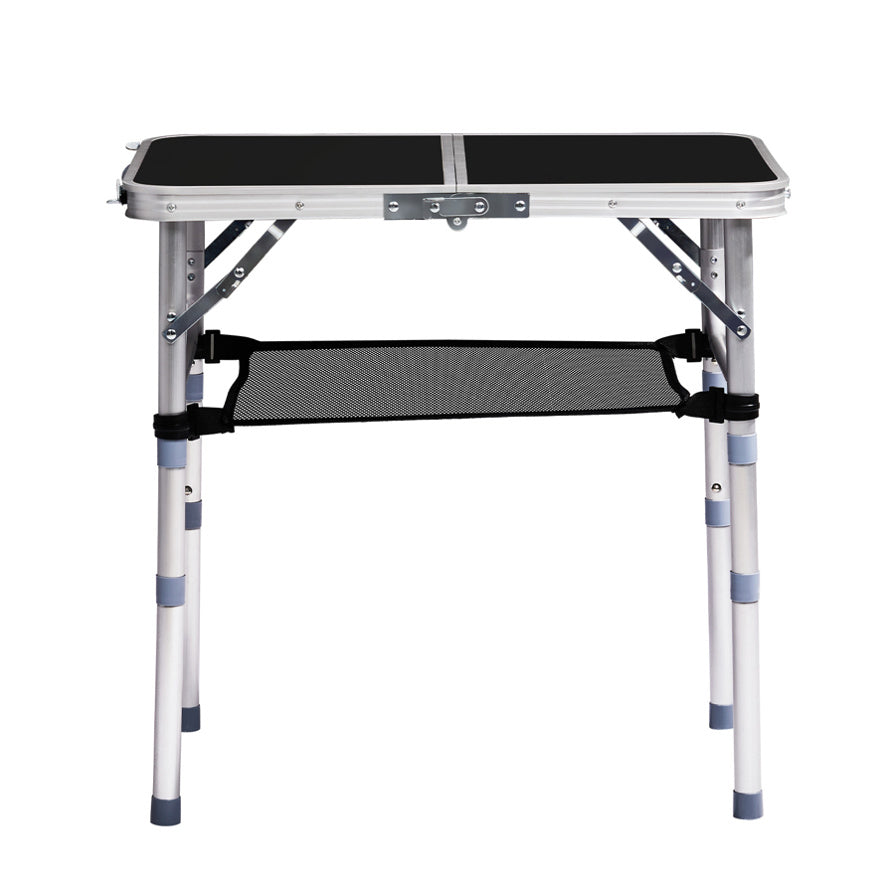 Enjoy convenience and versatility anywhere with this Folding Camping Table. Designed with 3 adjustable height settings, this portable aluminum table adapts to your needs—whether as a low coffee table, a standard patio side table, or a taller utility table. Its foldable design with a built-in carry handle makes it easy to transport for camping, picnics, beach trips, BBQs, and more. A durable aluminum frame ensures long-lasting performance while staying lightweight, and the mesh net shelf underneath adds handy storage for keeping essentials close by.