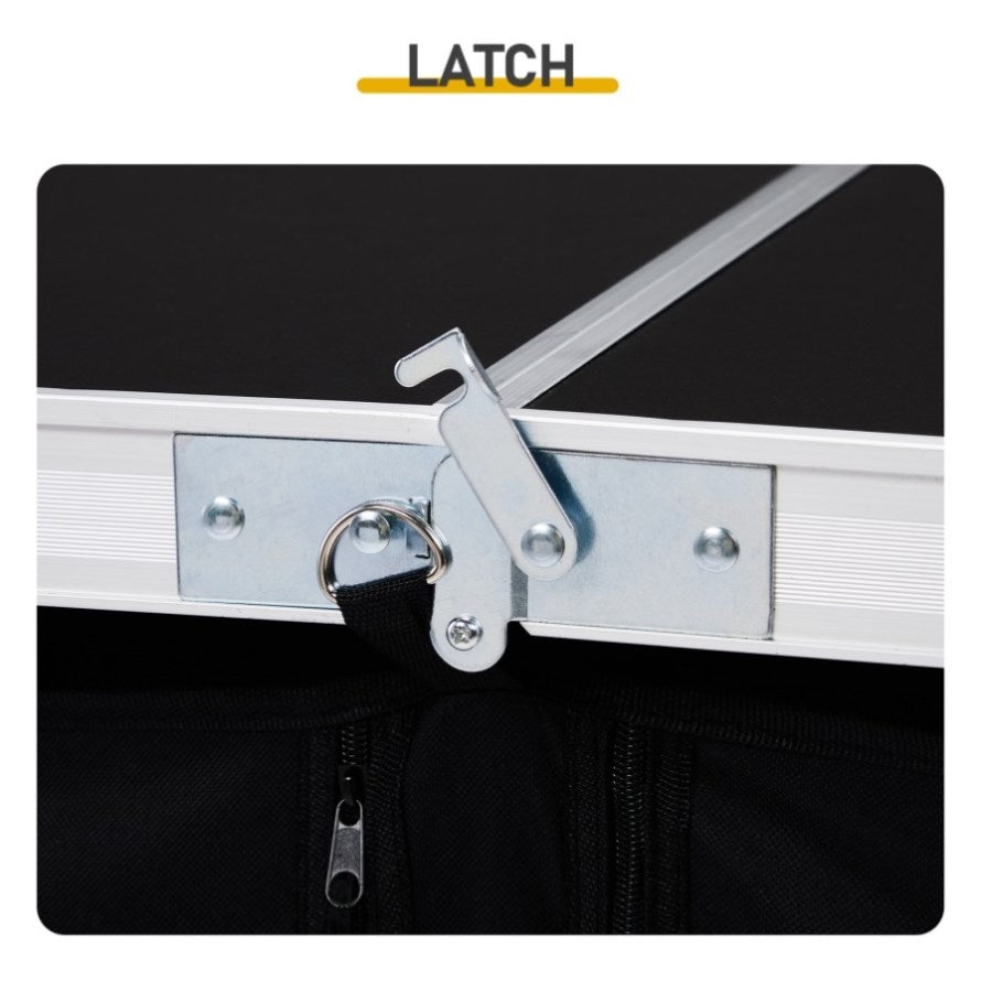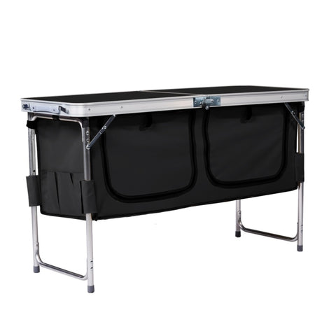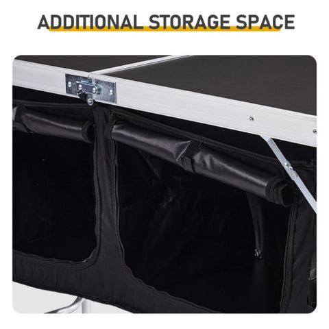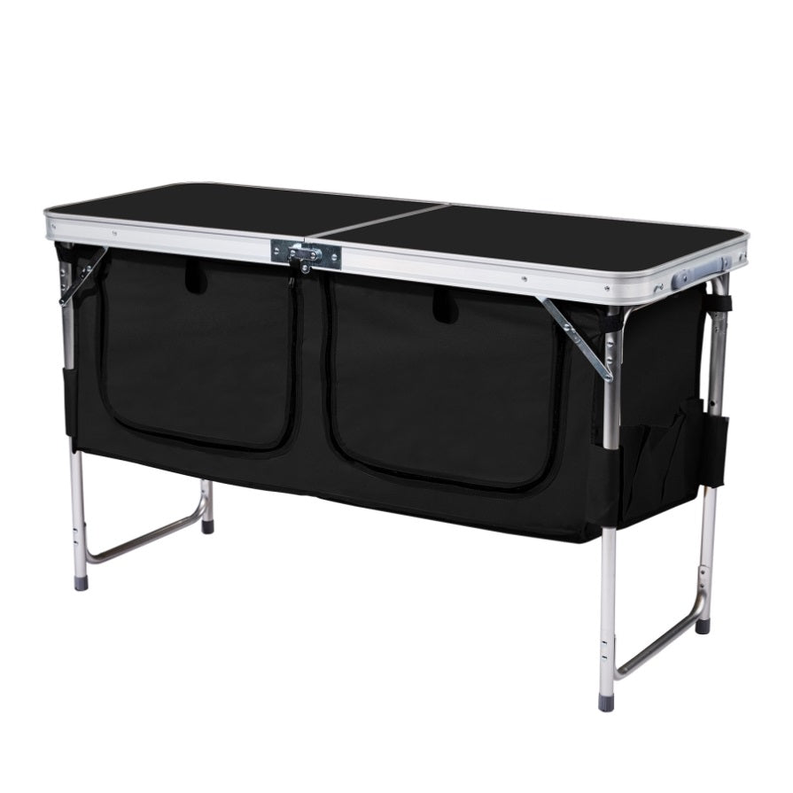 Make outdoor dining and camping more convenient with this Folding Camping Table featuring detachable storage compartments. Designed for versatility, it offers 3 adjustable height settings to adapt to different activities, from casual coffee breaks to full meal prep. The two spacious storage compartments keep food, drinks, and utensils organized, clean, and within reach, while the detachable design makes them easy to pack away. Crafted with a lightweight yet sturdy aluminum frame, this portable table folds compactly with a carry handle for effortless transport, making it ideal for camping, picnics, BBQs, beach outings, and more.