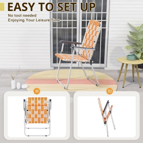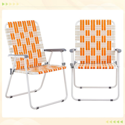 Set of 2 Webbed Folding Beach Chairs, Outdoor Patio Lawn Foldable Chairs for Camping Fishing Yard 42091416