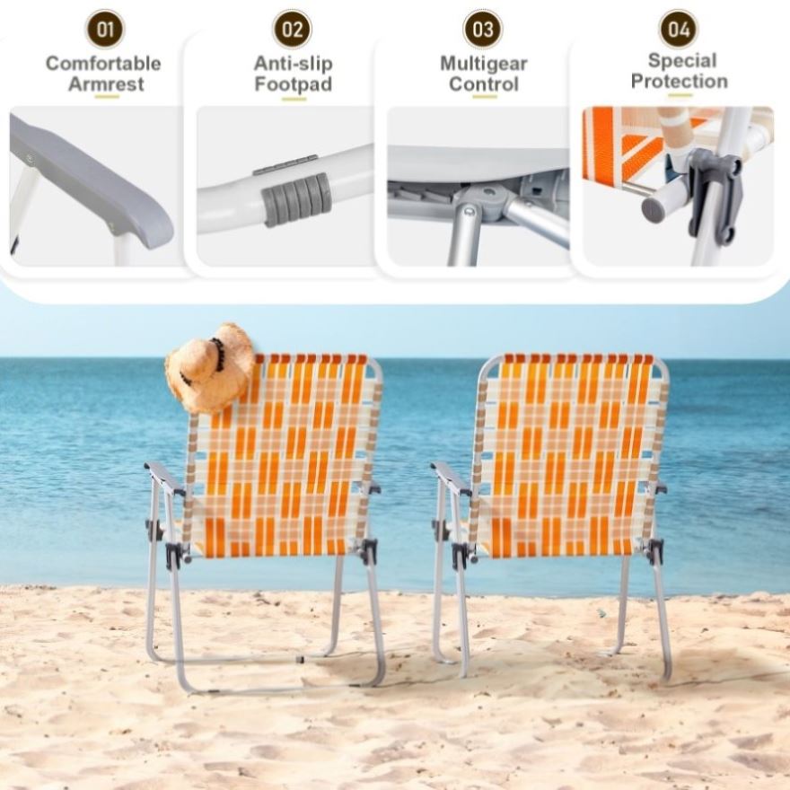 2. Durable & Stable Construction: These beach chairs feature a robust powder-coated steel frame and durable, fade-resistant webbing for long-lasting outdoor use. The A-frame steel structure ensure up to 260 lbs of weight capacity.