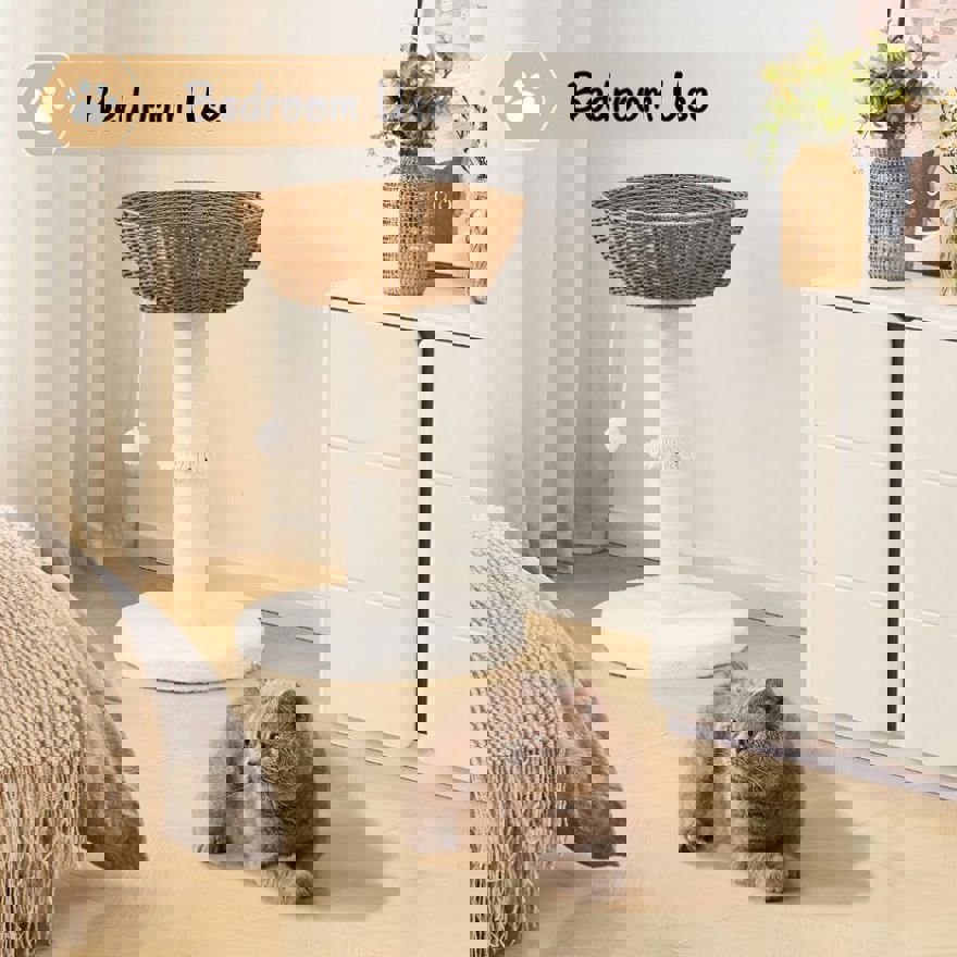 Plastic Rattan Material: This cat tree is carefully handwoven using high-quality plastic rattan, which perfectly fits cats’ innate desires to scratch and climb. The durable plastic rattan construction not only withstands vigorous scratching but also features a texture that strongly attracts your cat, making it willing to stay and play on the tree for a long time.