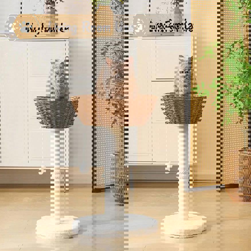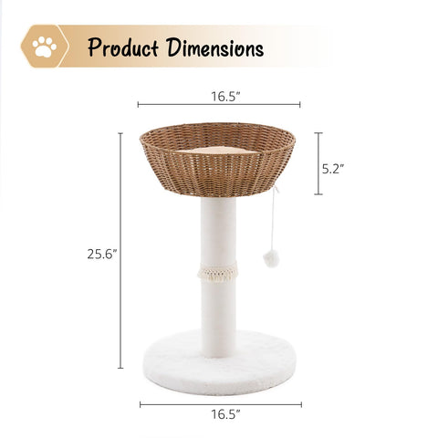 Handwoven Cat Tree Tower - Natural Material Cat Condo with Nest Basket Bed, Cotton Scratching Post, 23226975