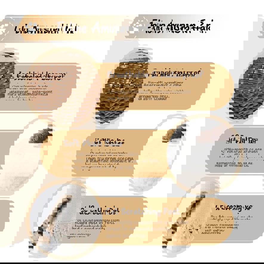 Natural Material:This cat tree is carefully handwoven using high-quality Water Hyacinth , which perfectly fits cats’ innate desires to scratch and climb. The unique natural scent of the materials will strongly attract your cat, making it willing to stay and play on the tree for a long time.