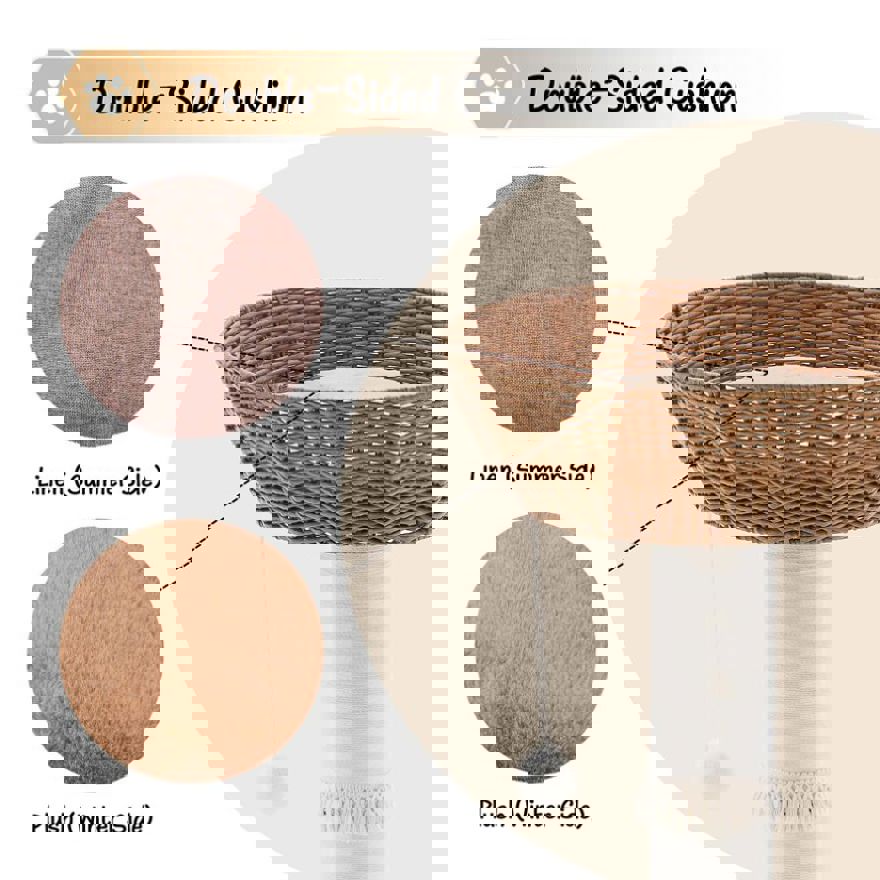 2-Sided Cushion for All-Season Comfort: The top nest of the cat tree is paired with a 2-sided cushion, made of soft plush fleece on one side and breathable linen on the other. In winter, the plush side delivers warm coziness to keep your cat from the cold; in summer, the linen side promotes air flow to prevent stuffiness. It ensures your feline gets a comfy resting spot in every season.