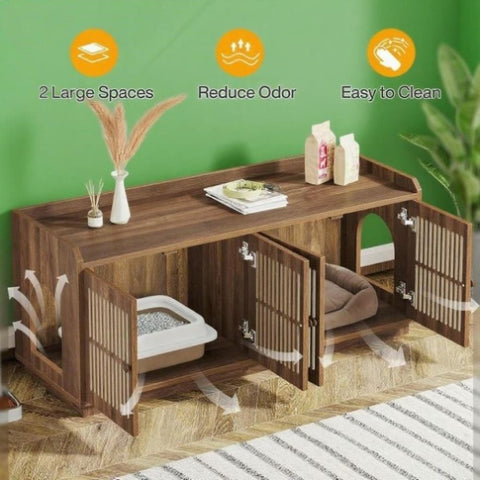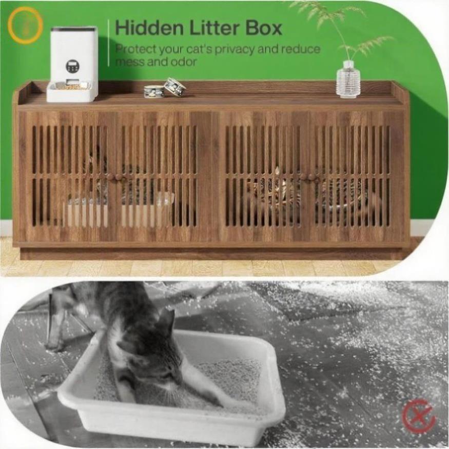 • Multifunctional Furniture: This cat litter box enclosure doubles as furniture, such as a cat house, storage cabinet, side table, or TV stand. It has a spacious tabletop on which you can place decorations, lamps, or other household items