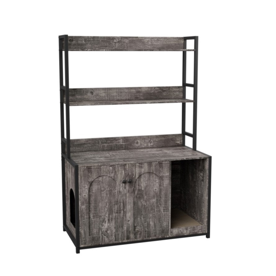 Best Gift For Cat and You: This cat house with storage is not only a hidden litter box but also can serve as a bookshelf and storage cabinet for your living room, bedroom, bathroom, etc. Say goodbye to smell and mess, to keep your house neat and cozy. Comes with a 3-tier storage rack to store magazines, cat foods, toys, scoops, or other pet supplies. Besides, each shelf has baffle to stop things falling down.