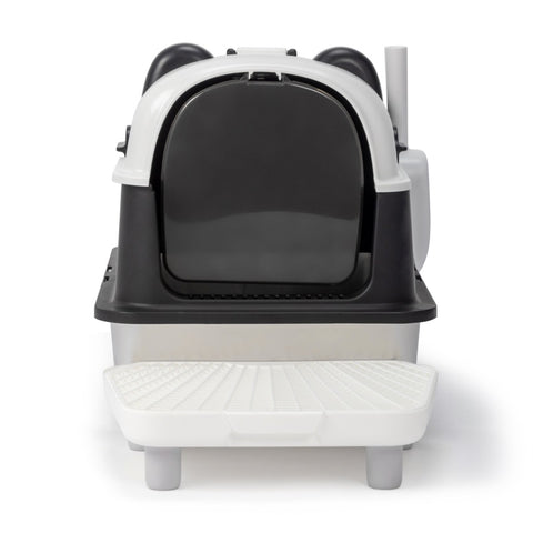 Add a playful touch to your cat's routine with this adorable panda-themed stainless steel cat litter box. Designed for big cats and multiple-cat households, this extra large litter box offers high-sided protection against spills and urine leakage. The combination of a durable stainless steel tray and a charming black-and-white lid with panda ears ensures both performance and visual appeal. Easy to clean, odor-resistant, and fully enclosed for privacy, this box includes a litter scoop and filter pedal for a cleaner, more convenient setup. It's the perfect blend of functionality and cuteness for your furry friend's bathroom space.