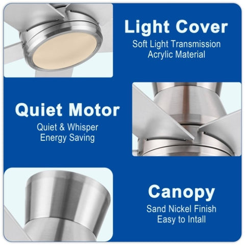 52" Brushed Nickel Lowe Profile Ceiling Fan with Light W1367P270468