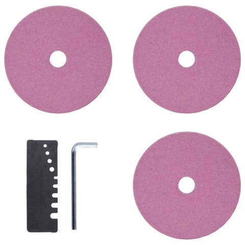 The package comes complete with 1/8 in., 3/16 in., and 1/4 in. thick premium grinding wheels. These high - quality wheels are carefully selected to ensure precise and long - lasting sharpening performance, catering to a wide range of chain - sharpening needs.