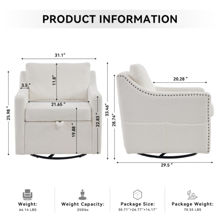 Product Composition : Soft Teddy Material+Foam Filling+Rivets Decoration+Wooden Frame+Swivel Black Metal Round Base+Upholstered