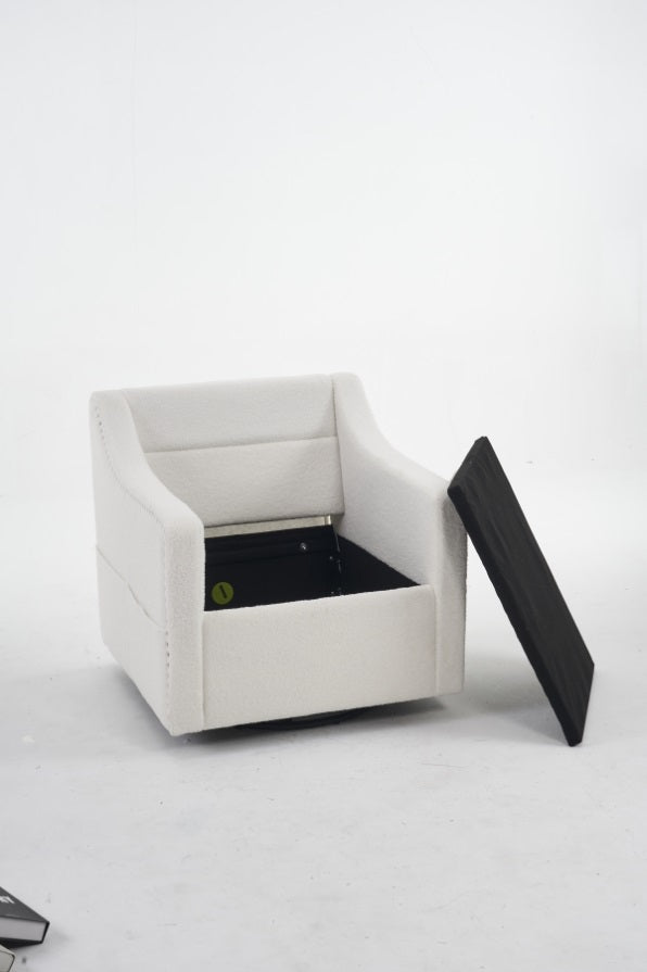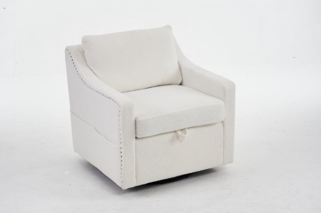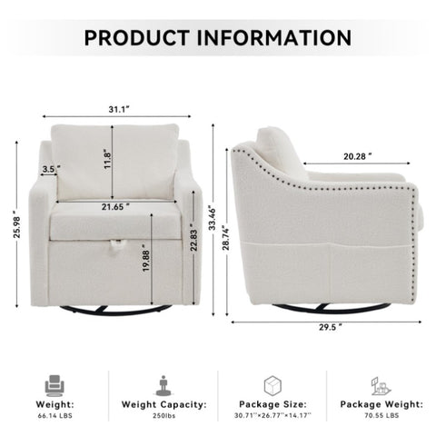 011-Teddy Fabric 360° Swivel Accent Chair with Upholstered,One Back Pillow,Armrest with Rivets W527P190834