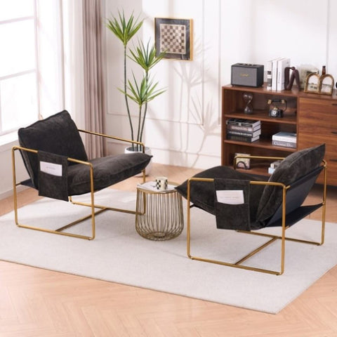 2 Chairs in 1 Box, Upholstered Hanging Armchair with Arm PocketsMetal frame, gold-plated W1901P147317