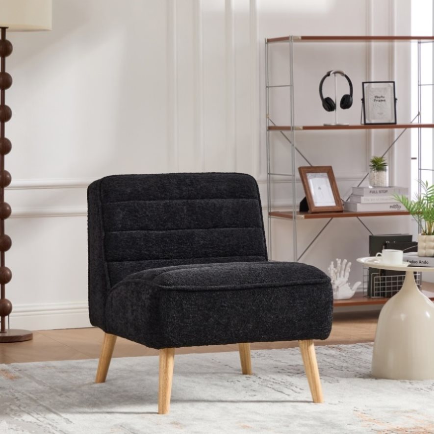 24.4" Wide Modern Upholstered Armless Chair with Rubber Wood Legs, Chenille Accent Chair for Living W3098P308776