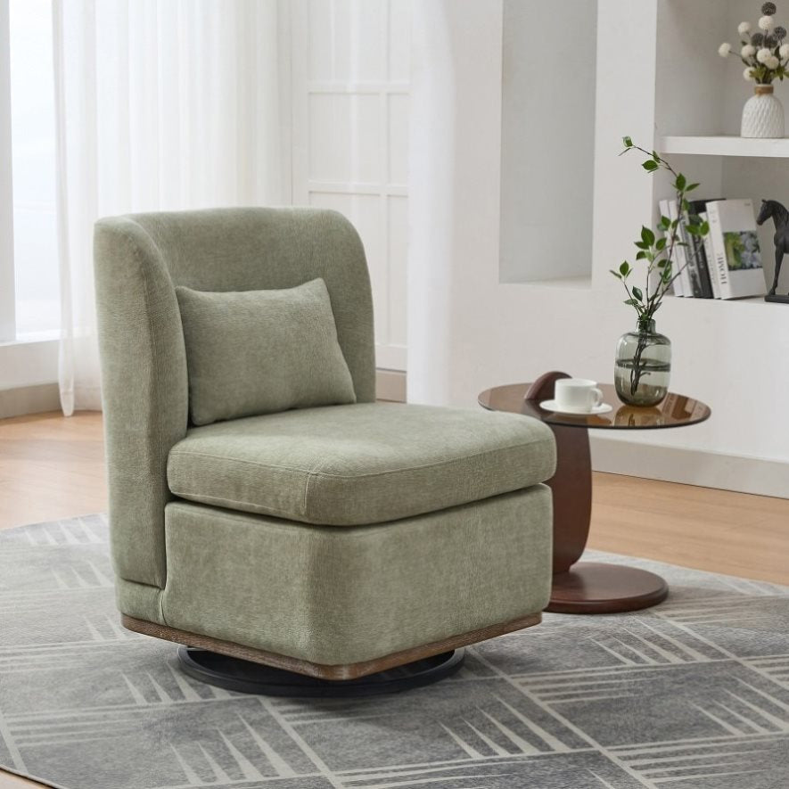 25.2 "Wide Modern Chenille Cushioned Armless Metal Base 360° Swivel Chair with Pillow, Suitable for W3118P253948