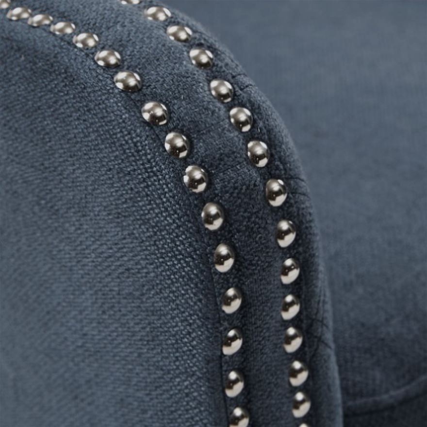 Relax in the luxurious style of the Madison Park Accent Chair. This modern accent chair takes on a classic twist with a quilted back and elegant silver studs lining the arms and seat. A high-density foam cushion fills the seat for exceptional comfort, while solid wood legs with a Morocco finish provide excellent support. Perfect in the living room or home office, this accent chair add elegance to your home décor. Leg assembly is required. Enhance your dining space with our Set of 2 Antique Gold Metal Frame Dining Chairs, upholstered in stylish grey or beige jacquard fabric. These chairs boast a sturdy metal frame that adds a touch of elegance to any modern contemporary home décor. The metal sled base design of these chairs offers superior strength and stability compared to traditional 4-leg chairs. With a maximum weight capacity of 300 lbs, these chairs are both functional and stylish. For maintenance, simply spot clean with a damp cloth—avoid using bleach or harsh chemicals. Plus, no assembly is required! Our product is neatly packaged and shipped in a single box for your convenience."
