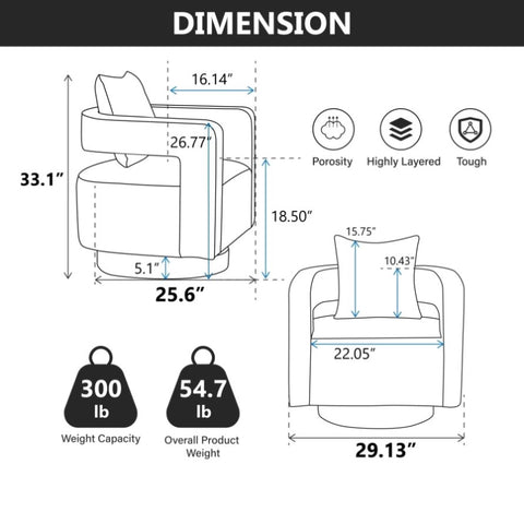 29.1"W Swivel Accent Open Back Barrel Chair Modern Comfy Sofa Chair With Weathered Base For Nursery W1298P241832