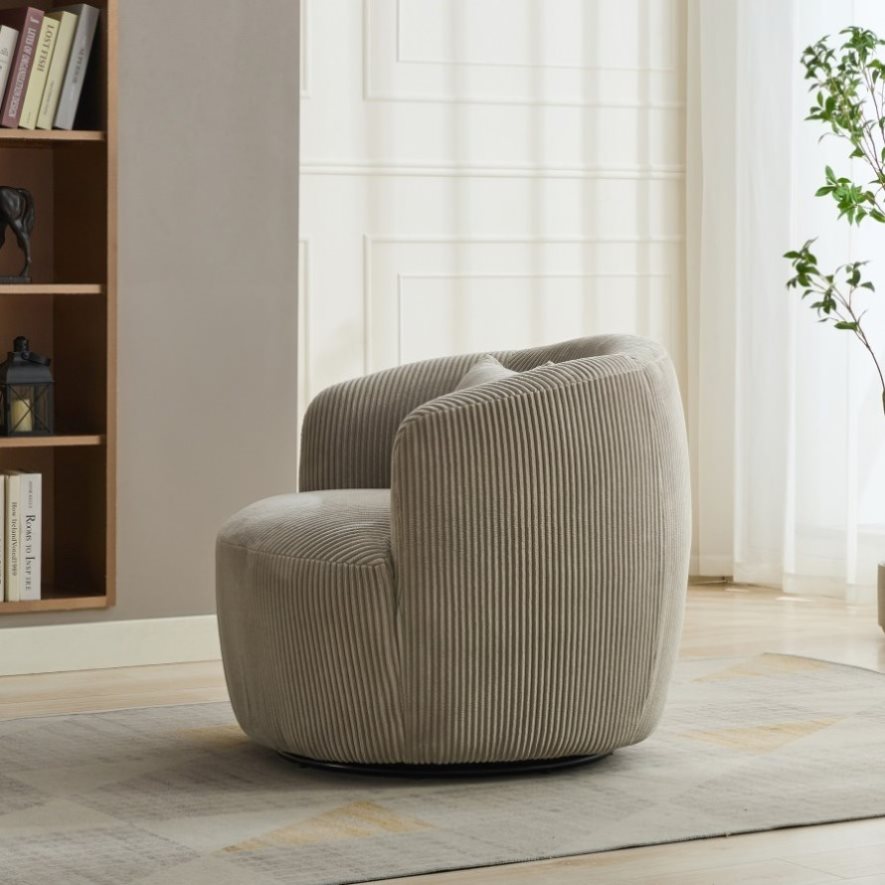 34.25 "Wide Upholstered Corduroy 360° Swivel Barrel Soft Accent Chair with Pillow, Circular Reading W3118P253971