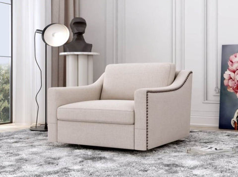 360 Degree Swivel Armchair Cotton linen skin-friendly fabric Ergonomic design Brass nail decorative W2113127539