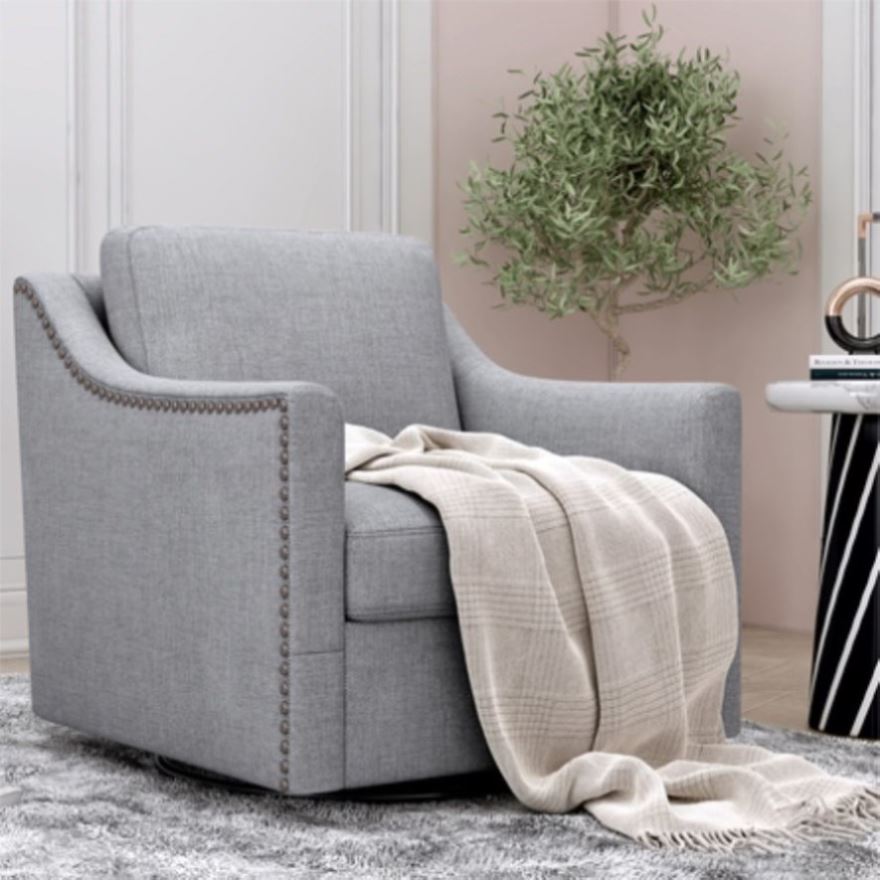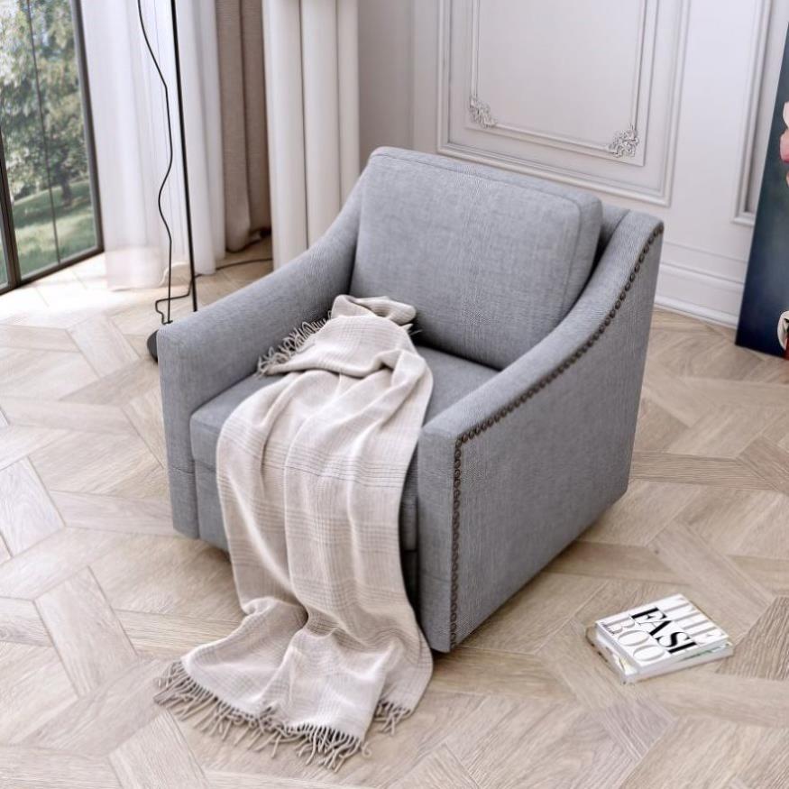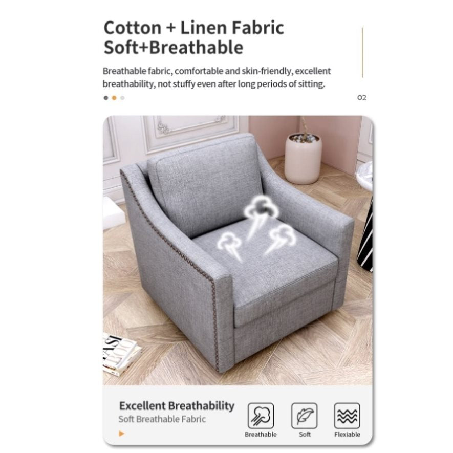 360 Degree Swivel Armchair Cotton linen skin-friendly fabric Ergonomic design Brass nail decorative W2113127543