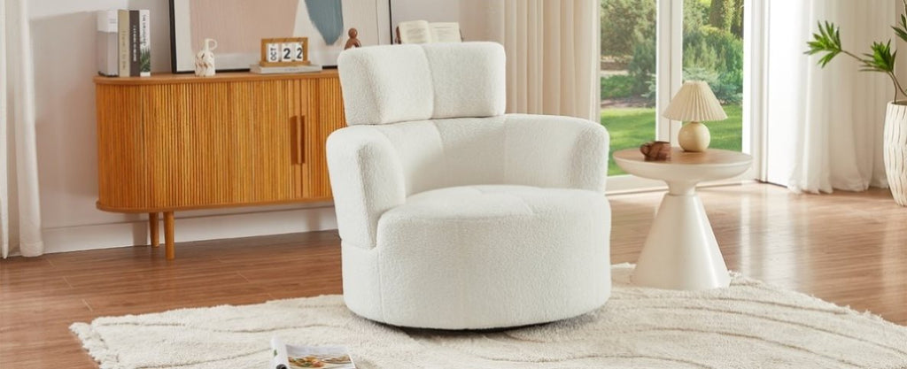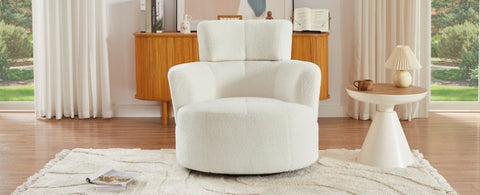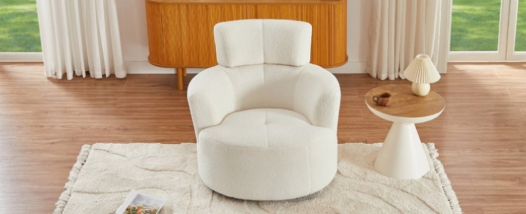 This stylish and functional chair is designed for ultimate comfort and versatility. It features a 360-degree swivel base for effortless movement, an adjustable headrest for personalized support, and ultra-soft Berber fleece upholstery for a cozy and luxurious feel. The ergonomic, spacious seating with a curved backrest and cushioned seat ensures optimal relaxation, while the sturdy construction with a solid frame and high-density foam offers durability and lasting support. With its modern aesthetic and versatile design, this chair is perfect for various settings, including living rooms, bedrooms, home offices, and cozy reading nooks.