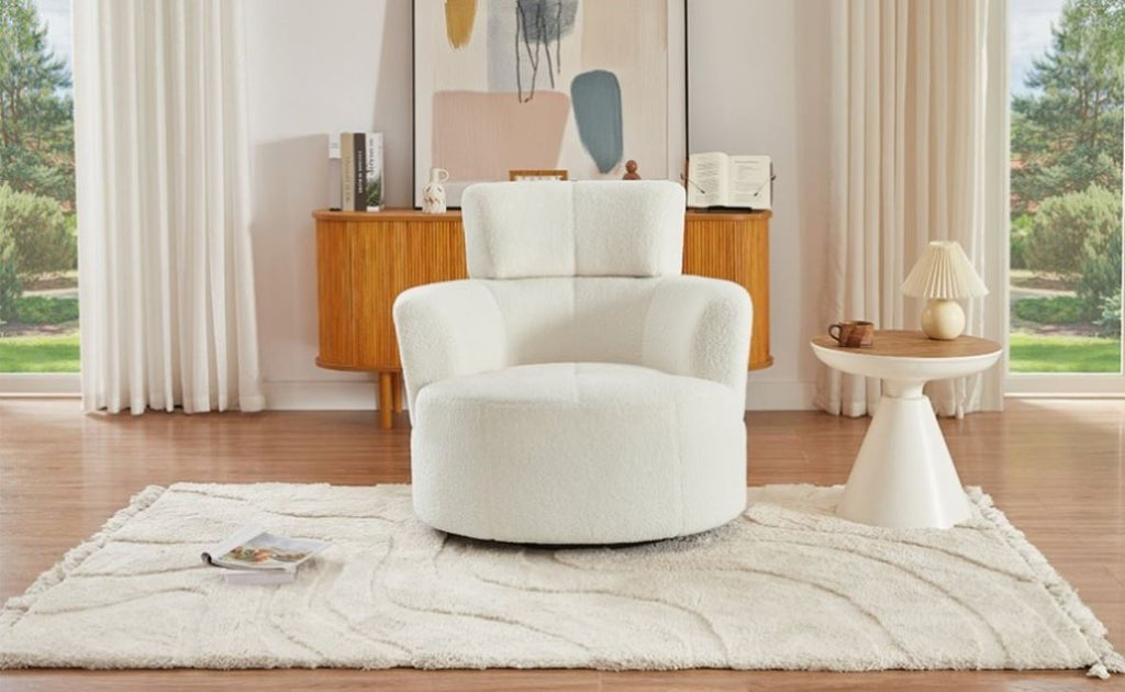 Ultra-Soft Berber Fleece Fabric – Upholstered in luxurious berber fleece fabric, the chair offers a soft, cozy, and inviting texture. The warm and plush material enhances comfort while adding an elegant touch to any interior decor.