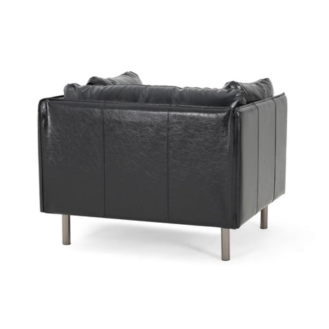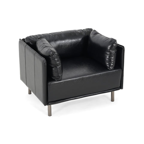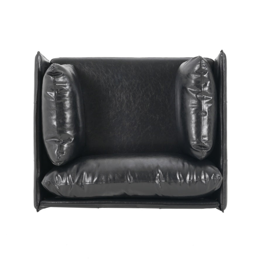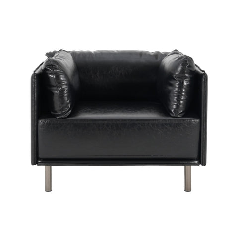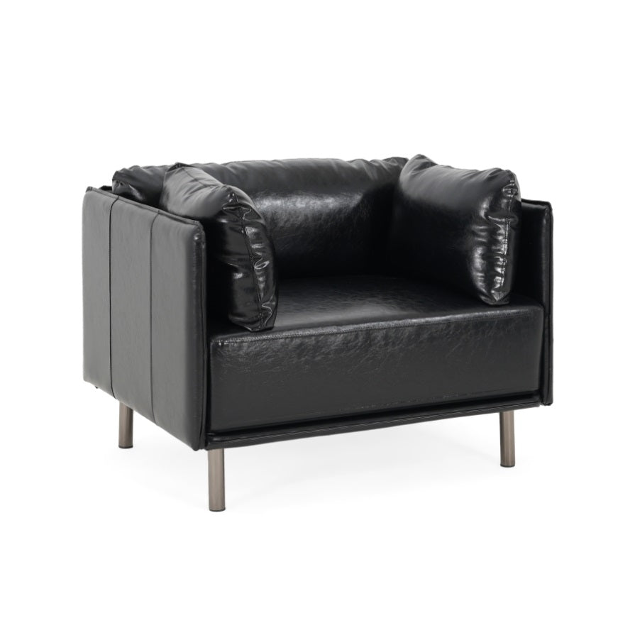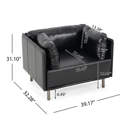 39" Vintage Black Faux Leather Lounge Chair with Polyester and PU Leather Upholstery, Solid Wood N767P208310K