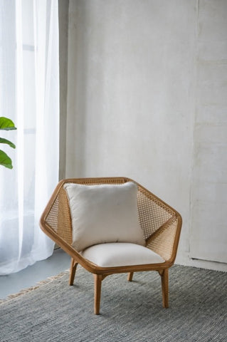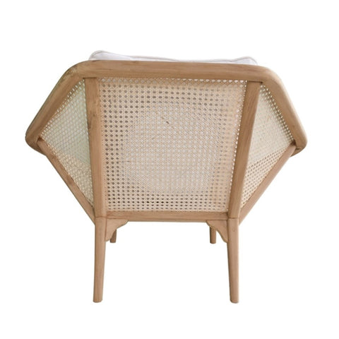 Clean, modern lines make the Tectona chair a dramatic conversation piece. Relax in comfort in a teak frame with rattan cane back. Finished in a natural brown, this chair is a great contemporary accent for your room.