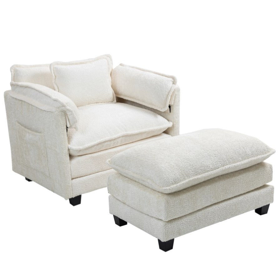 The sofa with ottoman can be especially beneficial for people who want to relax and unwind after a long day.Soft and skin-friendly to the touch, bringing warmth and comfort and a strong wrapping feeling.There are storage bags on the side for magazines and other small items.Simple design goes with a variety of home styles.