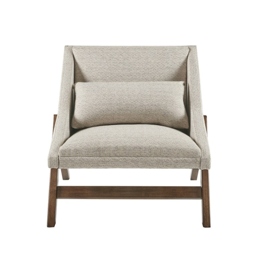 The INK+IVY Boomerang Accent Chair adds a striking one-of-a-kind look to your home. Recessed arms create a stunningly unique silhouette, while the brown upholstery provides a rich colorful flair. The solid wood legs and frame provide incredible support and display a pecan finish to complement the design. Featuring a removable back pillow, this lounge chair offers a refined update to your living room or home office. Assembly is required. Max weight capacity: 300 lbs.