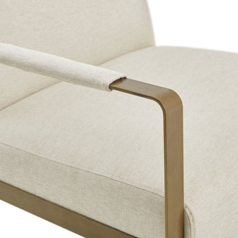 Elevate your living room decor with the luxurious style of the Martha Stewart Jayco Accent Chair from Perry Street collection. The seat and back are upholstered in a rich plush fabric that is complemented by the antique gold metal arms and legs, for a stunning modern look. The metal arms are also slightly upholstered to complement the rest of the design. Assembly is required and a tool is included.