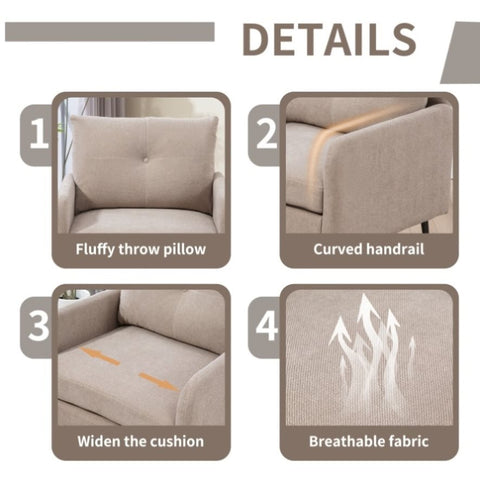 The frame of our bedroom chair is made of solid & manufactured wood which can easily hold up to 300 pound. And the sturdy metal legs not only increase the stability of the sofa chair but also provide additional security.