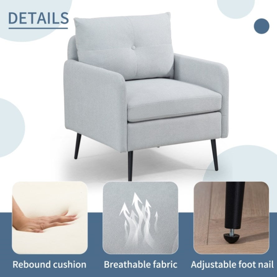 Multiful Use:Whether placed in a living room for cozy evenings, in a bedroom as a reading nook, or in any spare space like hallways or balconies for extra seating, this contemporary armchair combines comfort and style effortlessly.