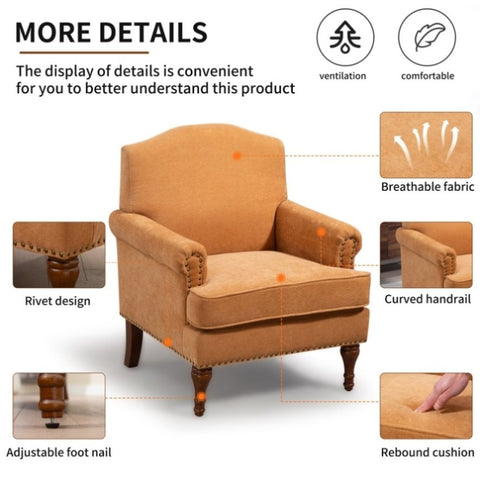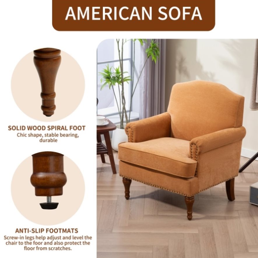 Simple yet elegant design, with nailhead trim and retro wooden legs, adds a touch of charm to your home decoration. You can put this chair in your living room, bedroom or office.