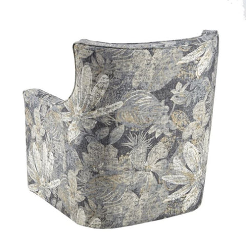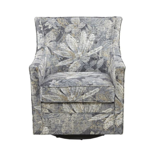 The Alana Curve Back Swivel Glider Chair offers a classic comfort for your living space. Track arms and the subtle curves create an alluring silhouette while tufted buttons on the back add an elegant accent. A swivel glider base provides sturdy support and allows for smooth and effortless 360 degree movement. Upholstered in a soft multi-hued blue fabric with a removable seat cushion, this swivel glider chair is the perfect accent piece to bring your living room décor together. No assembly required.